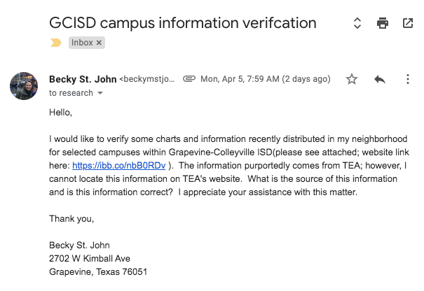 I asked the Texas Education Association (TEA) for verification on false information attributed to them.